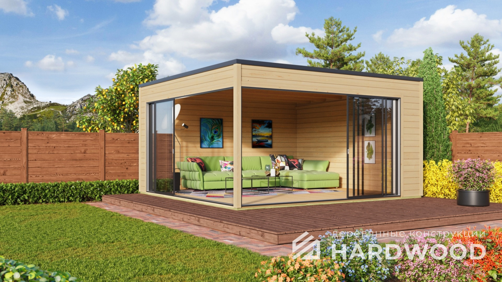 | Название модели: | Круглогодичная беседка с террасой панорамная №35 |